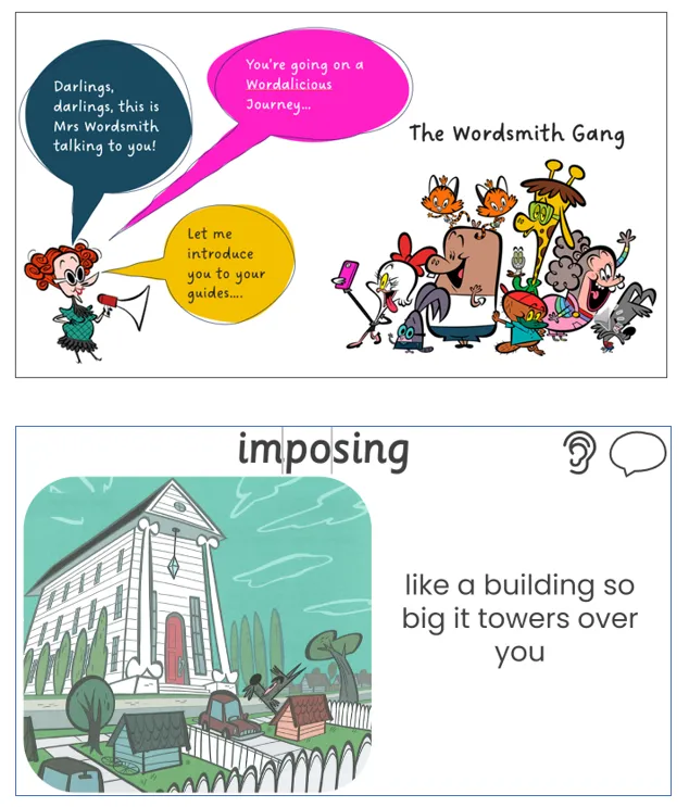 - Engaging characters “The wordsmith gang” which bring the meaning of words to life.